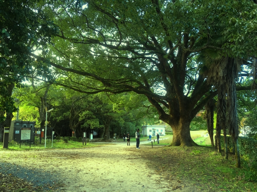 写真にある木はクスノキで、昔植物園に持ってくる時に牛で引っ張ってきたらしいが、途中で牛が動かなくなってこの場所に植え付けたのだ、というお話もされていた。クスノキは葉をちぎると香りがするということも教えて頂き、実際にそうするとほのかに香りがあった。